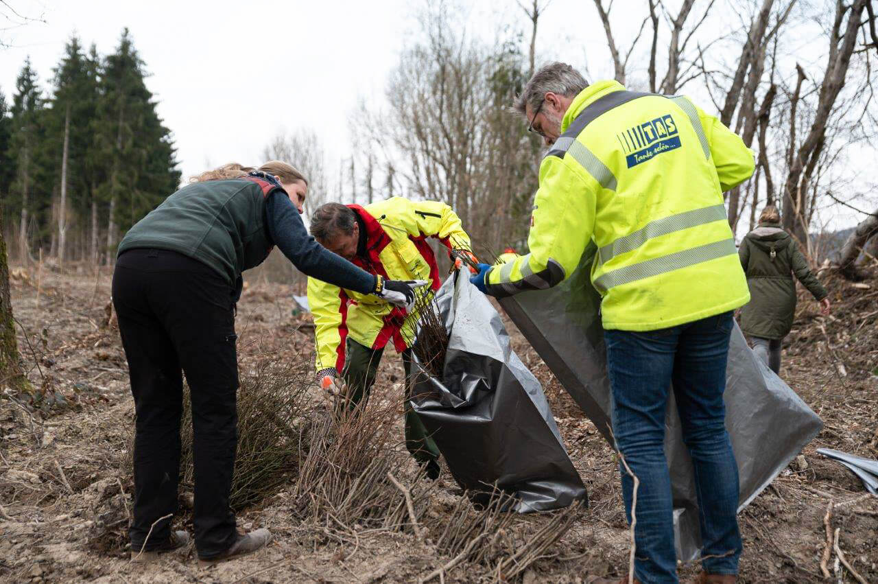 Michael Bothe, Förster der Försterei Kaierde erklärte auch Hintergründe zum Bepflanzungsplan: „Wir pflanzen derzeit die Bäume und Sträucher des Waldrandes. Dieser sollte möglichst struktur- und artenreich sein. Die Sträucher, die hier wachsen werden, dienen insbesondere Insekten, Singvögeln, Haselmäusen und einigen Fledermausarten, welche hier einen Lebensraum finden. Waldränder bieten viel Nahrung und Versteckmöglichkeiten. Zudem sind sie als biologischer Windschutz sehr nützlich.“